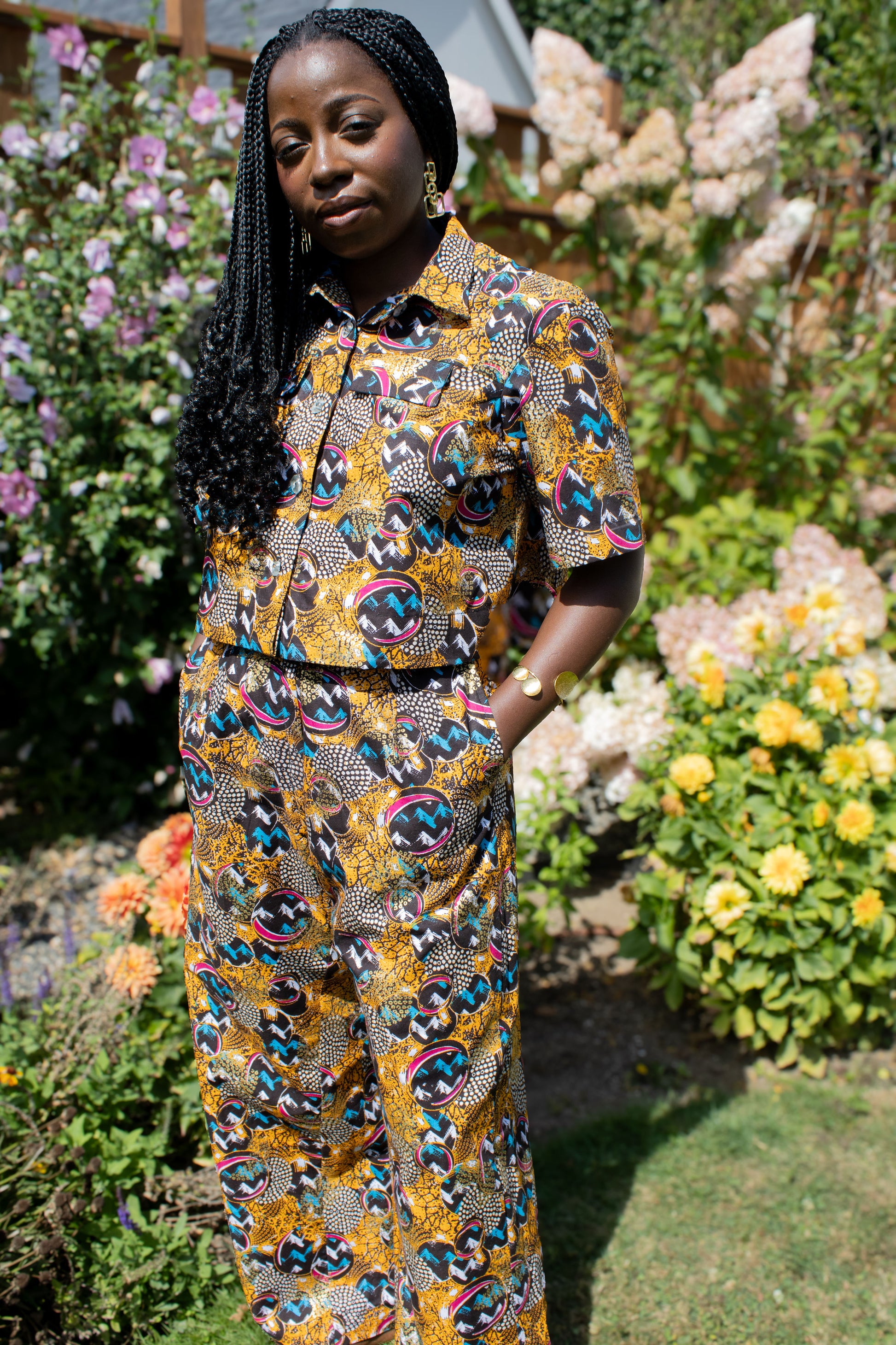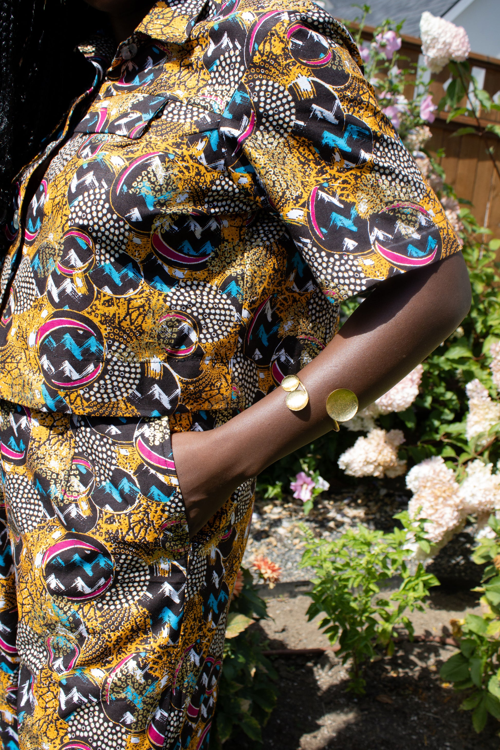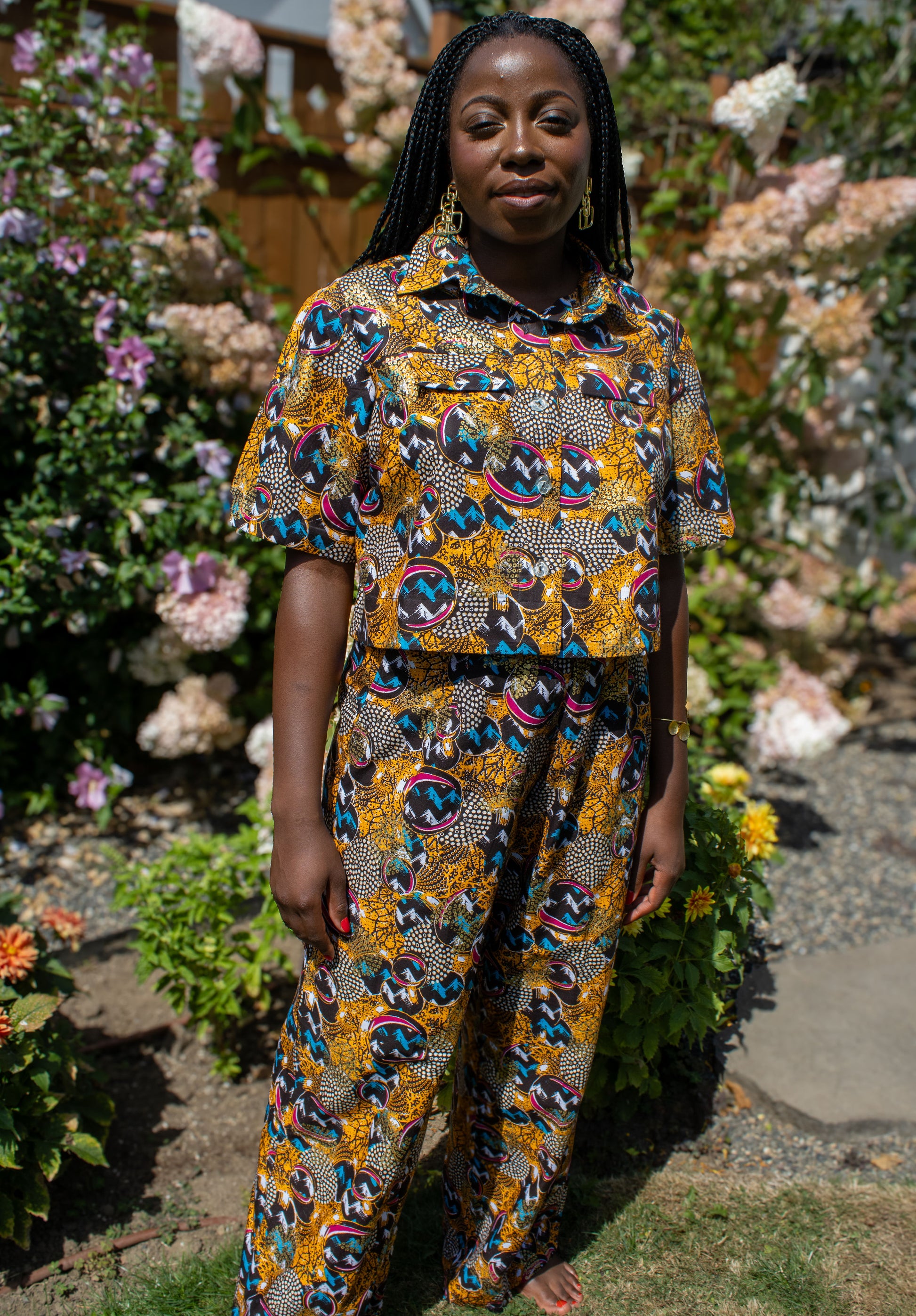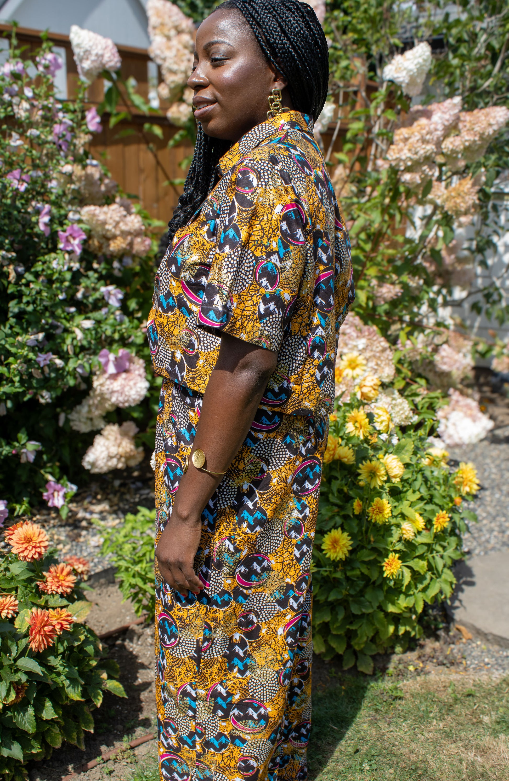 Subtle in its luxury, striking in its grace—the The Essential set is for the minimalist with soul. Made with high-quality wax fabric and finished with gleaming recycled glass buttons, this flowing two-piece set is effortlessly elegant. Free of embellishment but rich in intention, it invites you to move with ease and presence. This is quiet confidence, redefined.