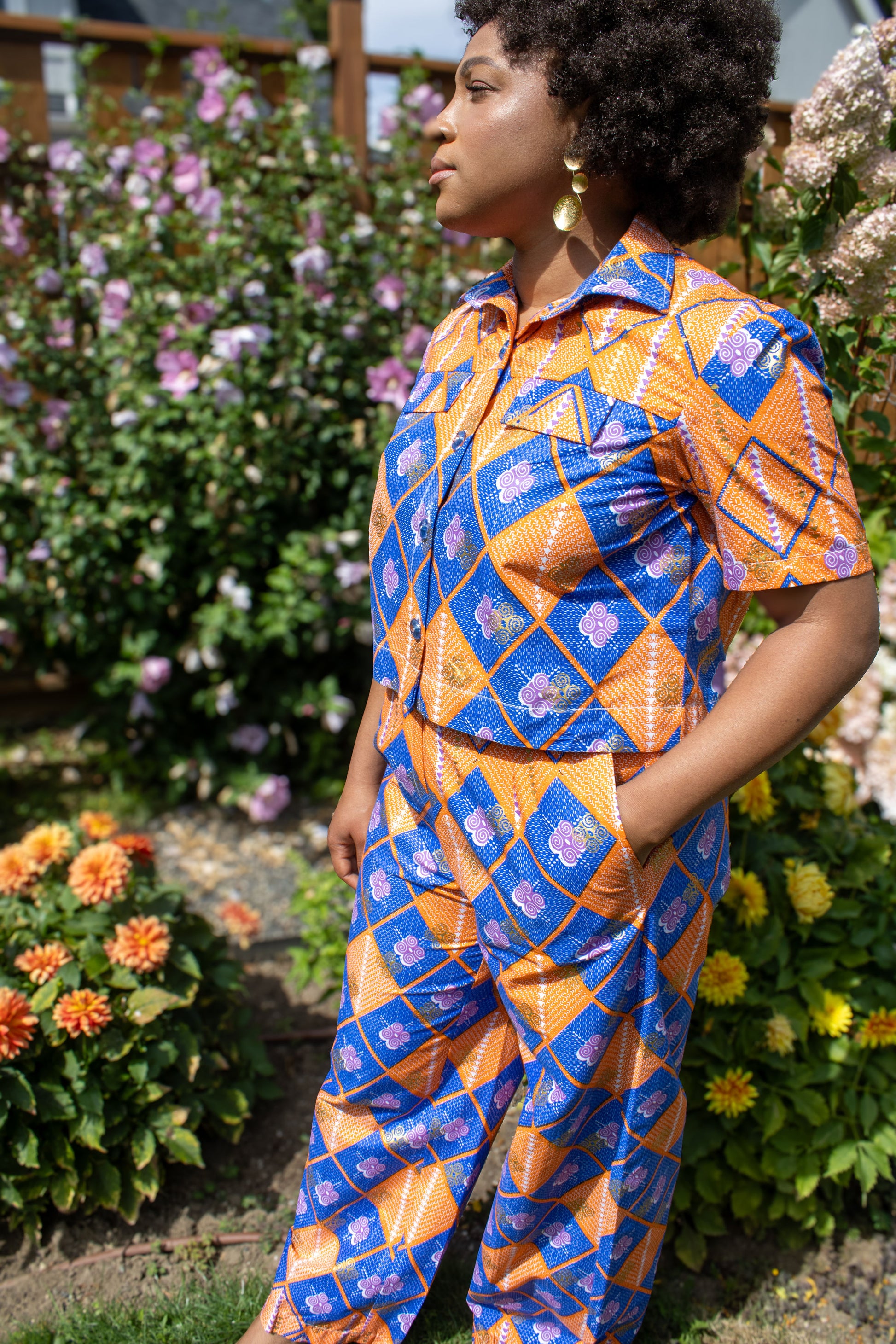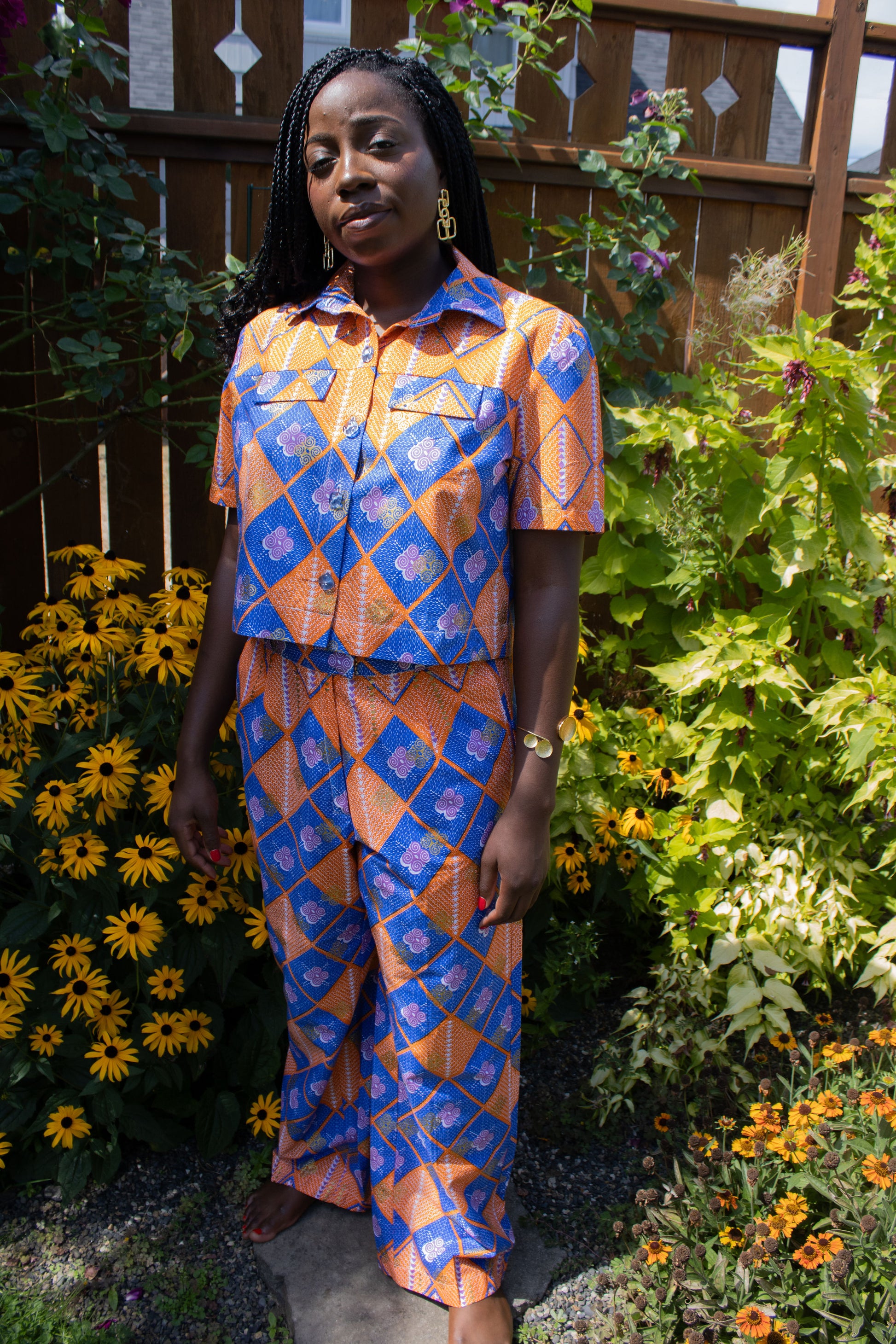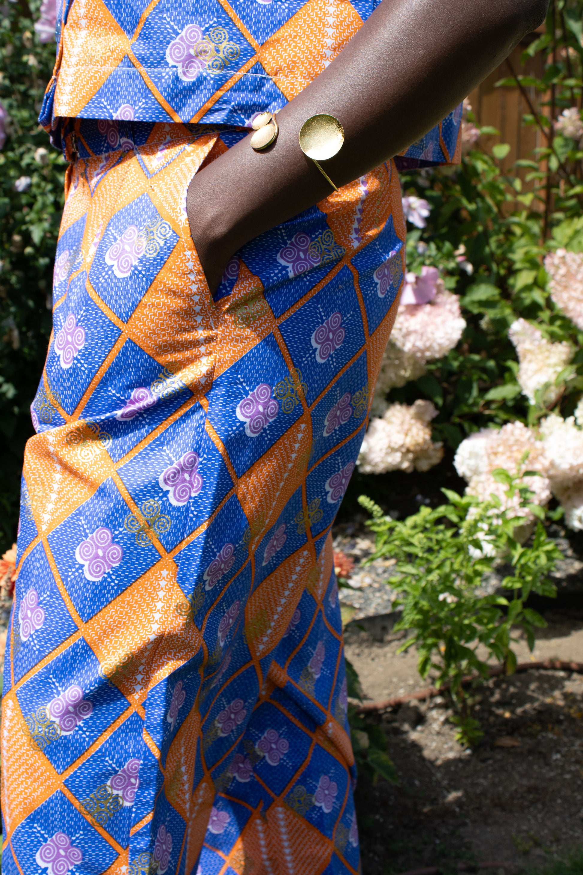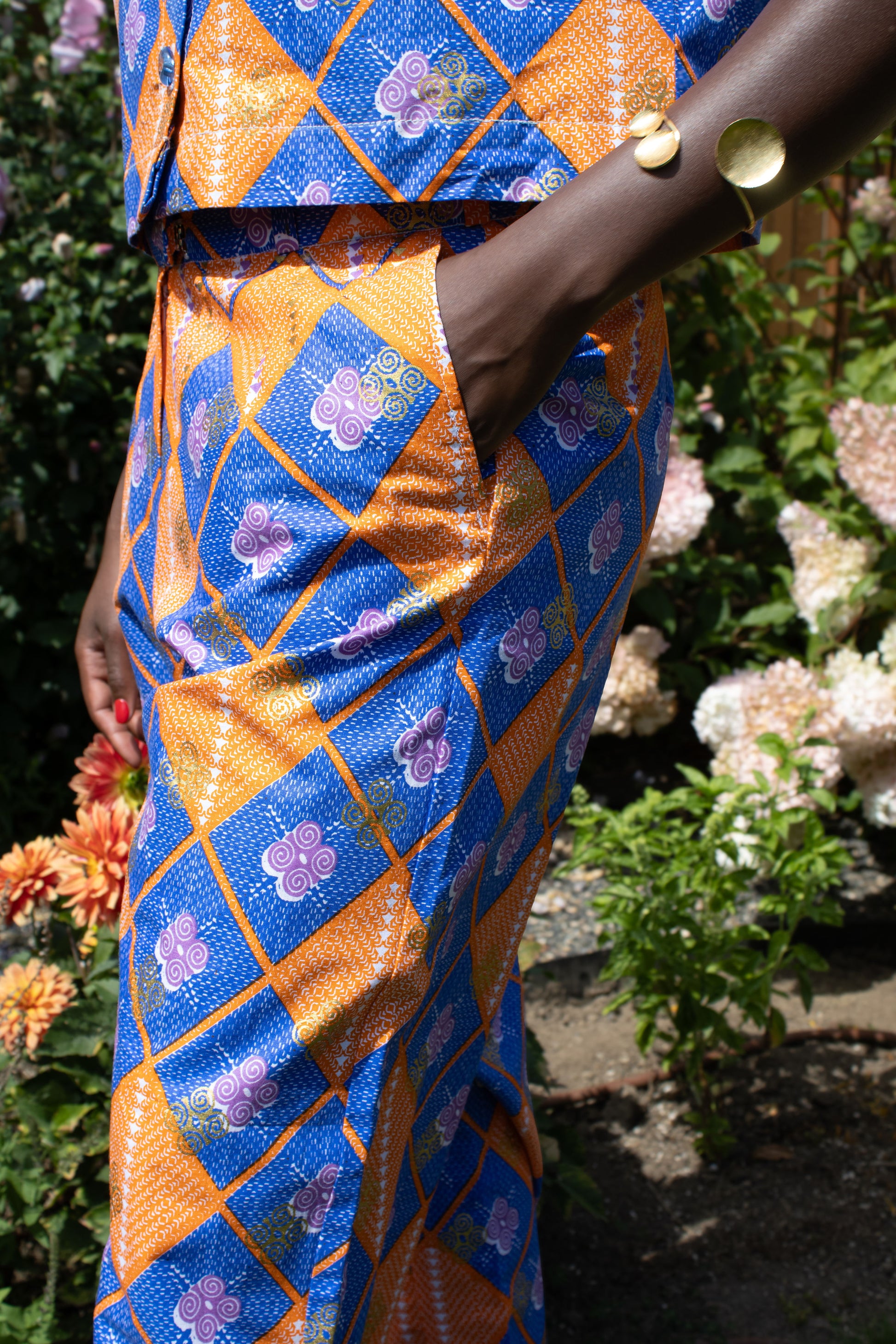 Subtle in its luxury, striking in its grace—the The Essential set is for the minimalist with soul. Made with high-quality wax fabric and finished with gleaming recycled glass buttons, this flowing two-piece set is effortlessly elegant. Free of embellishment but rich in intention, it invites you to move with ease and presence. This is quiet confidence, redefined.